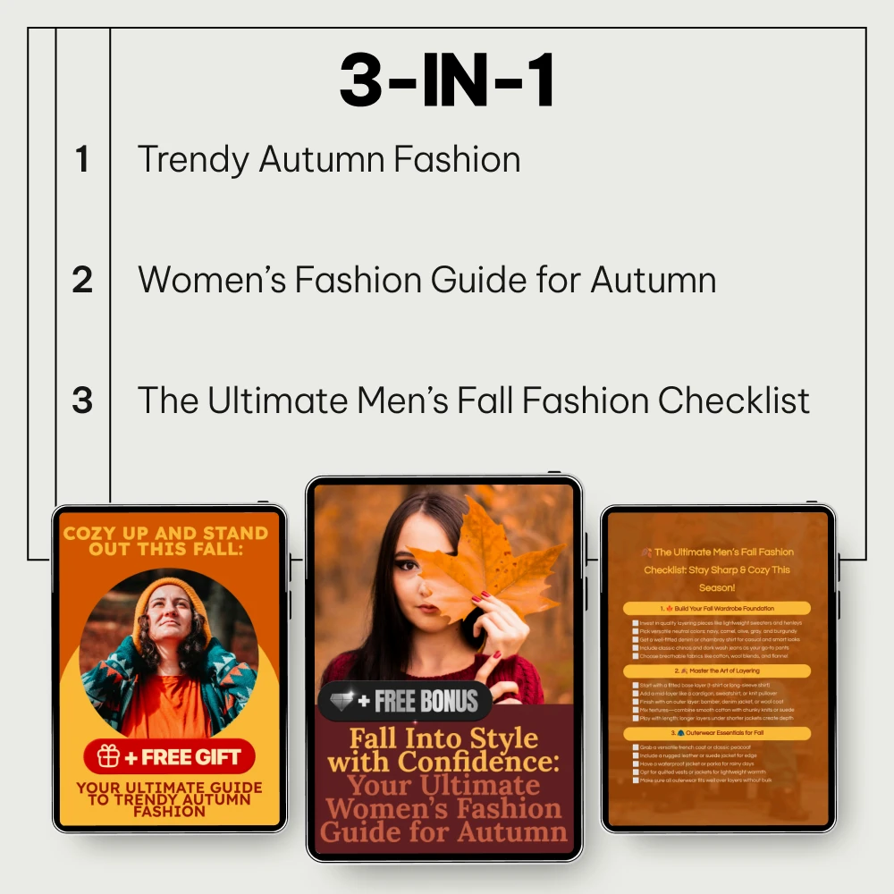 Get ready to embrace the season with style and confidence! Our Cozy and Bold Fall Fashion Trends 3-in-1 Digital Bundle is your ultimate guide to fall fashion, offering everything you need to stay trendy and cozy all autumn long. This carefully curated bundle combines expert fashion advice, practical checklists, and insider tips to help you create the perfect fall wardrobe. Whether you’re updating your closet or looking for fresh inspiration, this digital collection has something for everyone!