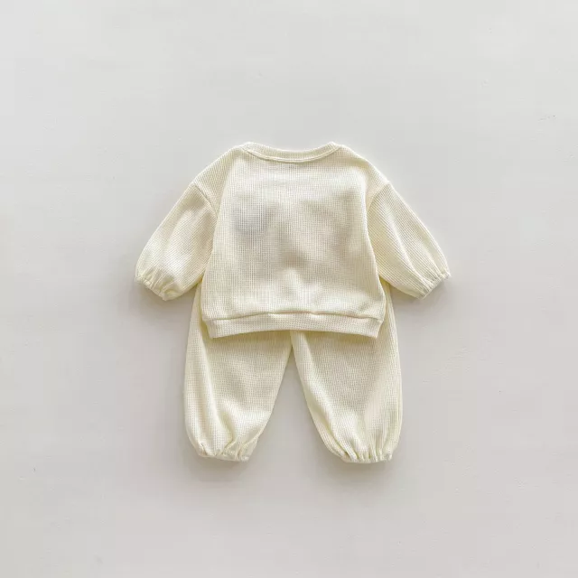 This versatile baby set is perfect for all seasons. The breathable waffle fabric keeps your baby warm during cooler days and comfortably cool on warmer ones. Whether you’re heading out for a stroll in the park or staying in for a cozy day at home, this outfit is designed to keep your little one feeling comfortable and looking adorable all day long.
