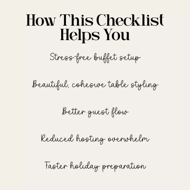 This checklist is designed for anyone who loves hosting or wants to feel confident doing it. It’s perfect for first-time holiday hosts, busy parents, stylish home entertainers, or anyone searching for an easy way to master how to design a cozy buffet table for holiday gatherings without feeling overwhelmed.
