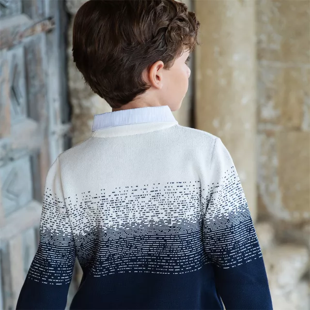 This knitted sweater is crafted with care to provide warmth and durability throughout the season. Its true-to-size fit ensures comfort and ease of movement, while the high-quality knit offers lasting softness. Free from ropes or harsh chemicals, this outerwear is designed with your child’s safety and comfort in mind. The versatile layered-look design makes it easy to pair with jeans, trousers, or joggers, making it a must-have piece for his cold-weather wardrobe.