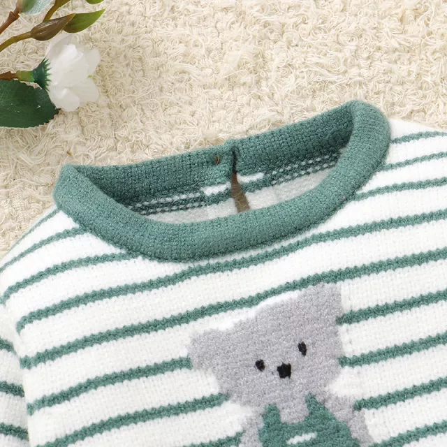 Keep your baby boy warm and comfy with this charming knit sweater and pants set designed especially for newborns up to 9 months. Featuring a cute striped pattern and an adorable bear design, this outfit is perfect for cooler seasons like spring, autumn, and winter. Made with a soft blend of viscose, polyester, and nylon, it’s gentle on delicate baby skin while providing warmth and flexibility for all-day comfort.