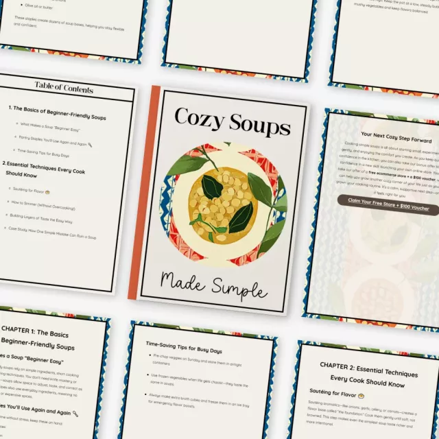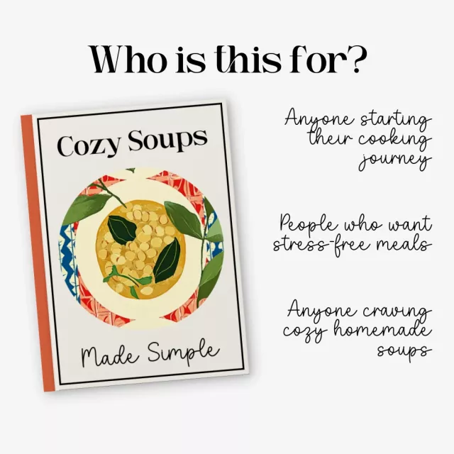 Download Cozy Soups Made Simple today and start cooking soups that comfort, satisfy, and inspire—no stress, no skill required. Your next warm, homemade bowl is just a click away!