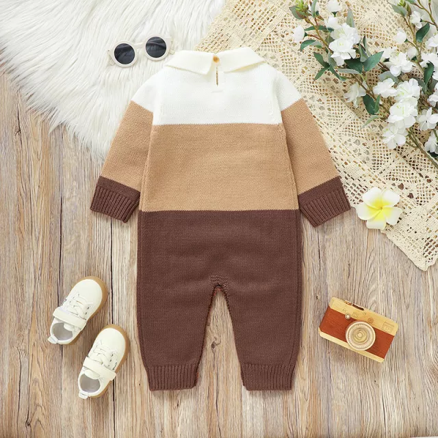 Wrap your baby in gentle warmth and adorable style with this cozy newborn romper. Designed for infants from newborn up to 18 months, this long-sleeve jumpsuit is made from soft acrylic knit fabric that feels gentle on delicate skin. Its charming striped pattern and classic turn-down collar create a timeless look your baby will love wearing every day.
