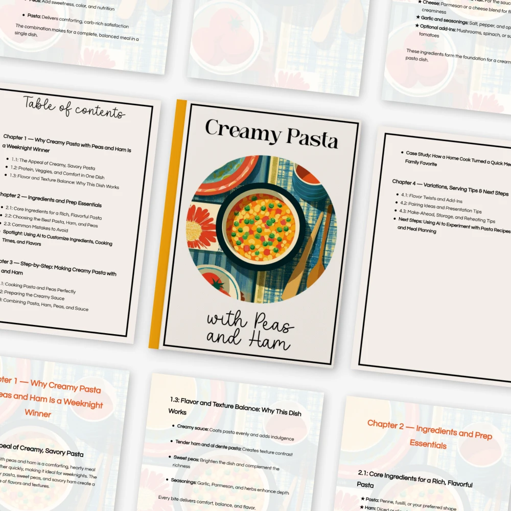 If you’ve been craving a creamy, cozy, and flavor-packed pasta dish that comes together fast, this digital guide is your new kitchen essential. The Creamy Pasta with Peas and Ham Guide walks you step-by-step through how to make creamy pasta with peas and ham, helping you master a satisfying weeknight dinner that feels both comforting and elevated. Whether you’re a beginner home cook or someone who wants fresh inspiration in the kitchen, this downloadable resource shows you exactly how to create rich, balanced flavors with simple ingredients.