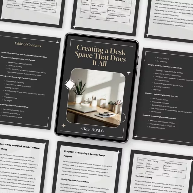 Reimagine your workspace and take control of your productivity. Download Creating a Desk Space That Does It All now and discover how to set up multi functional desk space that works as hard as you do. Your perfect desk awaits—start creating it today!