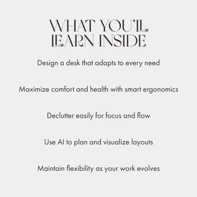 Unlike generic desk setup guides, this eBook blends interior design, productivity science, and smart technology insights into one cohesive, accessible resource. It helps you build a workspace that feels personal, functional, and ready for every task life throws your way.