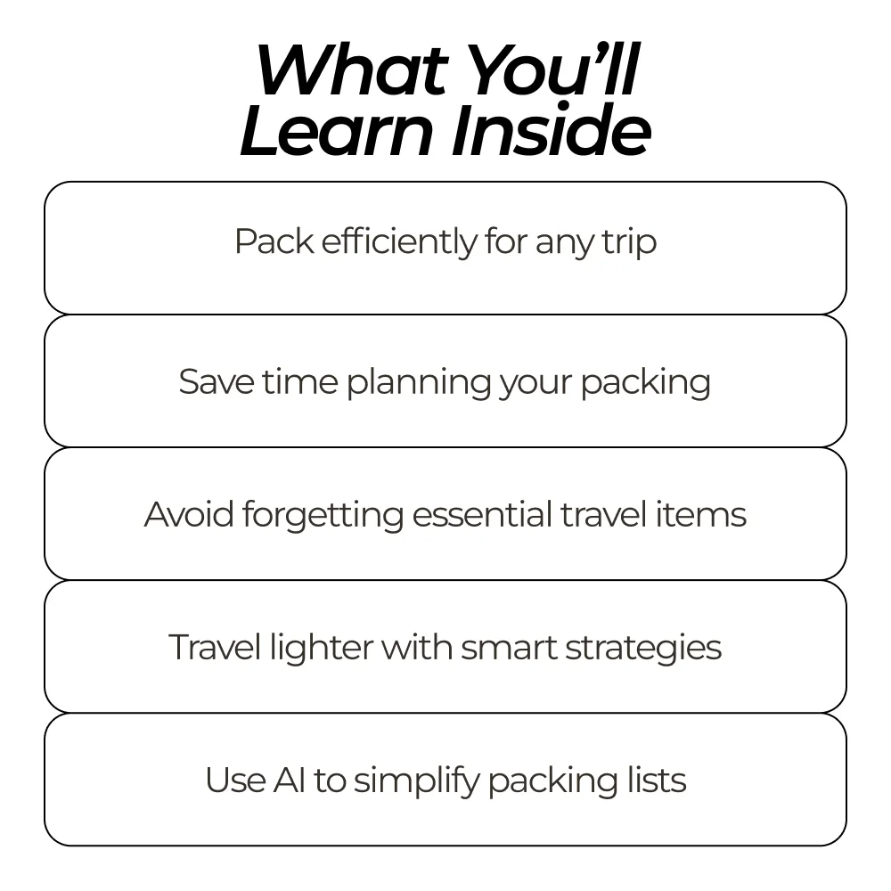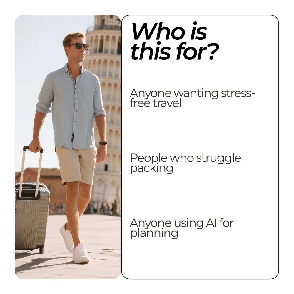 This bundle is perfect for frequent travelers, busy professionals, students, and anyone who wants to simplify packing. It’s ideal if you’ve ever struggled to fit everything you need in a carry-on, or if you want to explore how ChatGPT for creating a packing list can make your travel prep smarter and faster.