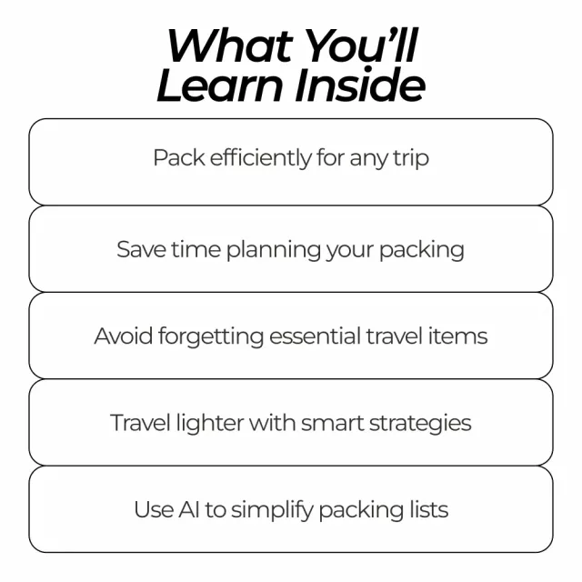 Unlike generic packing guides, this bundle combines practical strategies with AI-powered solutions. With step-by-step instructions on using ChatGPT for creating a packing list, you’ll get personalized, flexible, and foolproof packing plans every time.