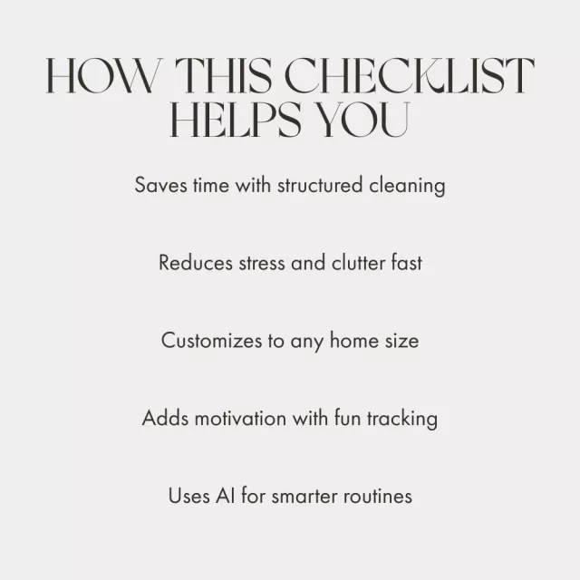 • Customizable design: Adapt the checklist to suit your home size, lifestyle, and preferences.