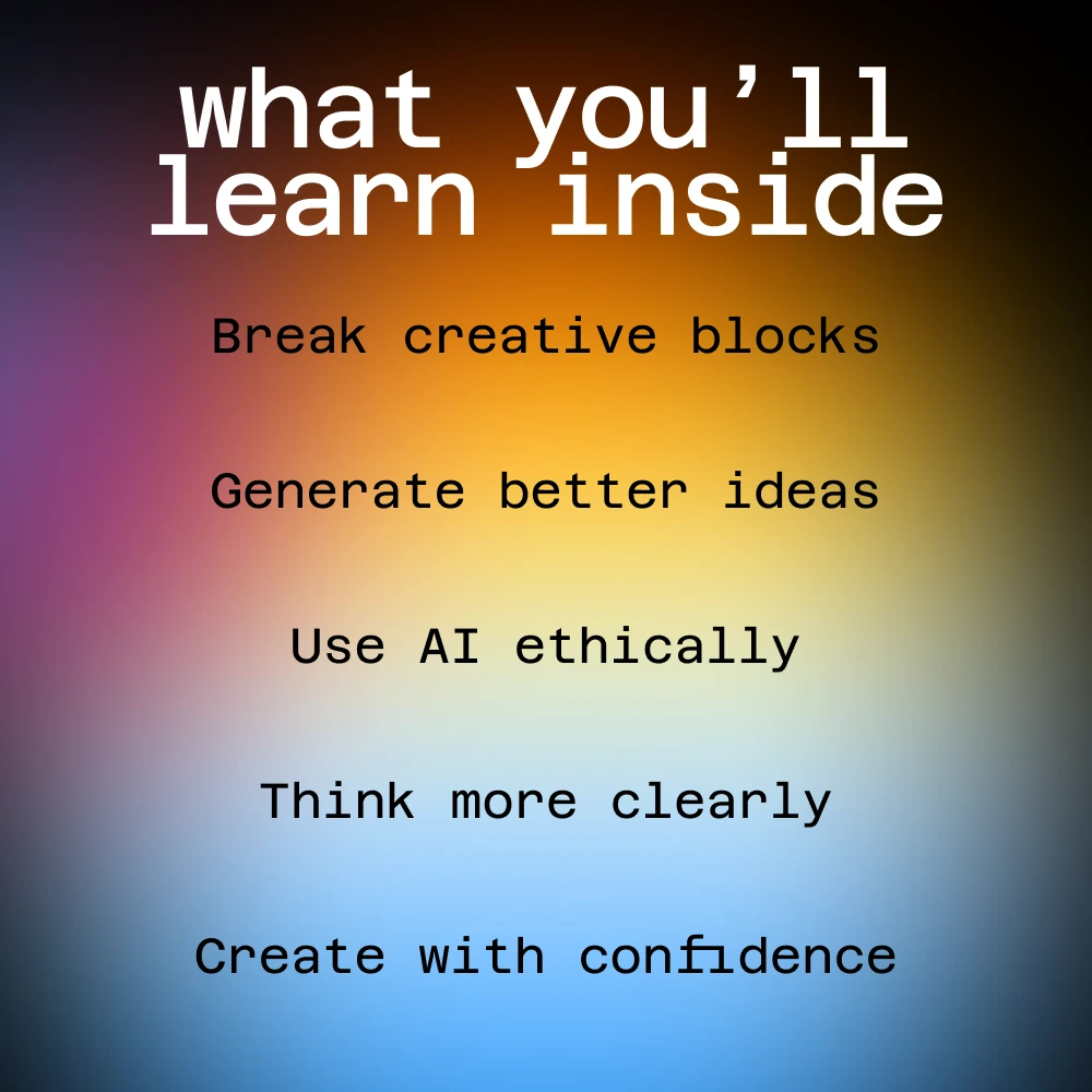 • Creative AI Problem-Solving Skills – Learn structured ways to approach creative blocks and turn challenges into opportunities using AI support.