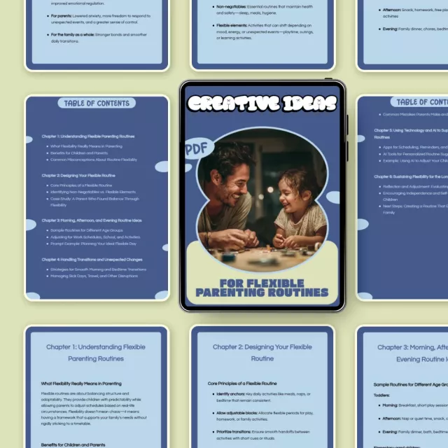 Parenting doesn’t have to feel rigid or overwhelming to be effective. Creative Ideas for Flexible Parenting Routines is a thoughtfully designed ebook that helps you create routines that support your family without forcing you into unrealistic schedules. This digital guide focuses on flexibility, balance, and real-life parenting, giving you practical tools to adapt routines as your children grow and life changes. Whether you’re juggling work, school, or unexpected disruptions, this ebook offers flexible parenting routines ideas that actually work in everyday life.
