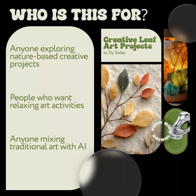 This guide is perfect for creatives who love working with natural materials, parents and teachers looking for engaging art activities, and artists seeking new inspiration. What sets it apart from other guides is the unique blend of traditional leaf art techniques with forward-thinking AI tools, creating a bridge between handmade creativity and digital enhancement.
