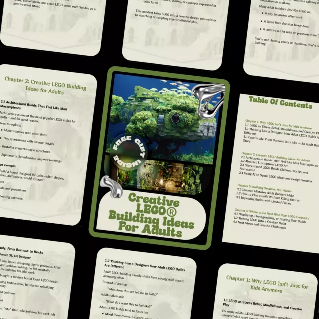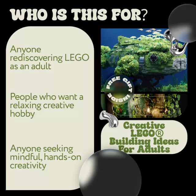 This guide is ideal for adult LEGO fans, creative professionals, hobbyists, and anyone looking for a relaxing yet mentally stimulating activity. It’s perfect if you enjoy LEGO but want more depth, purpose, and originality in your builds.