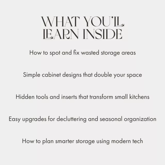• Chapter 1: Understanding Your Kitchen Storage Needs – Learn how to assess your cabinet space and spot common mistakes.