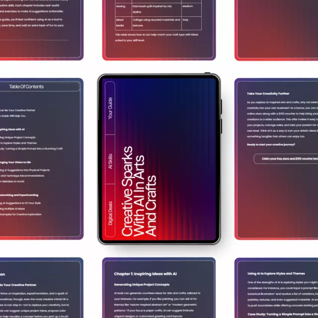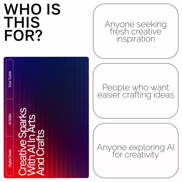 Unlock a whole new world of creative possibilities with Creative Sparks with AI in Arts and Crafts, a beautifully designed digital guide that helps makers at every skill level use AI as an inspiring creative partner. Whether you’re a hobbyist, a DIY enthusiast, or a seasoned artist, this guide shows you how to spark fresh ideas, refine your style, and bring imaginative projects to life using ai suggestions for arts and crafts. Easy to follow, fun to explore, and packed with practical examples, it’s your new go-to companion for creative breakthroughs.