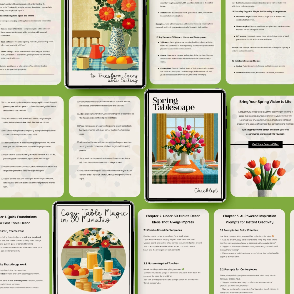 I really enjoyed using the Creative Table Setting Bundle for Every Day. The checklists make it so easy to pull a table together without overthinking it, especially the “Cozy Table Magic in 30 Minutes.” I’ve already used a few ideas for weeknight dinners and it definitely made things feel more special. My only small gripe is that some sections felt slightly repetitive. Still, it’s a practical and motivating resource overall.