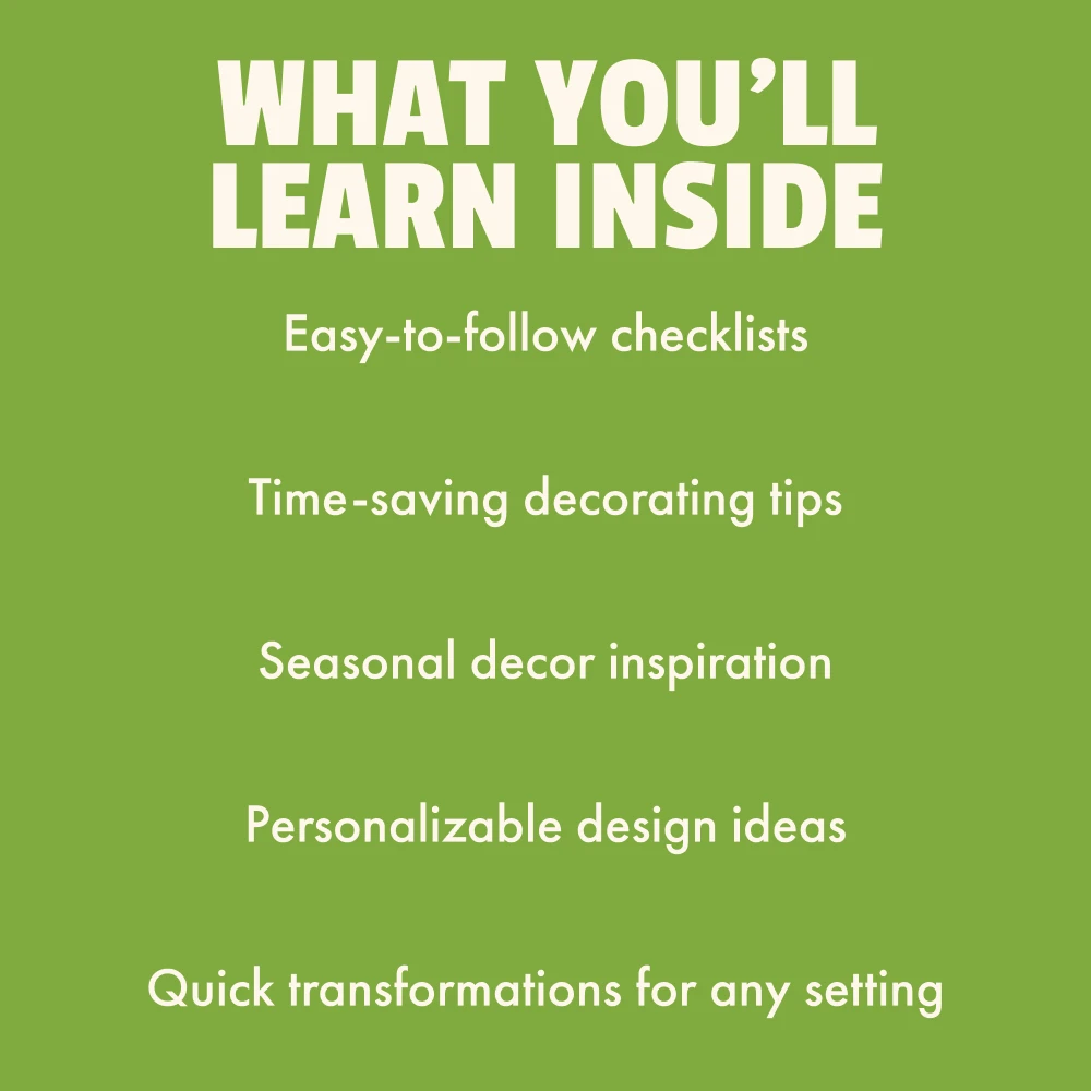 This isn’t just another set of “look-good” ideas—it’s a practical, easy-to-execute strategy that guarantees a stunning tablescape every time. The checklists take the guesswork out of table setting, ensuring you never feel overwhelmed or unsure. It's an ideal resource to keep on hand year-round.