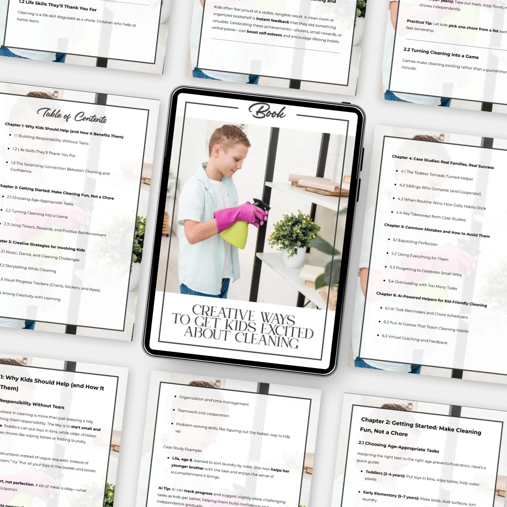 Make cleaning time a moment of connection, learning, and laughter. Download Creative Ways to Get Kids Excited About Cleaning now and watch your children take pride in keeping their spaces tidy — all while having fun!