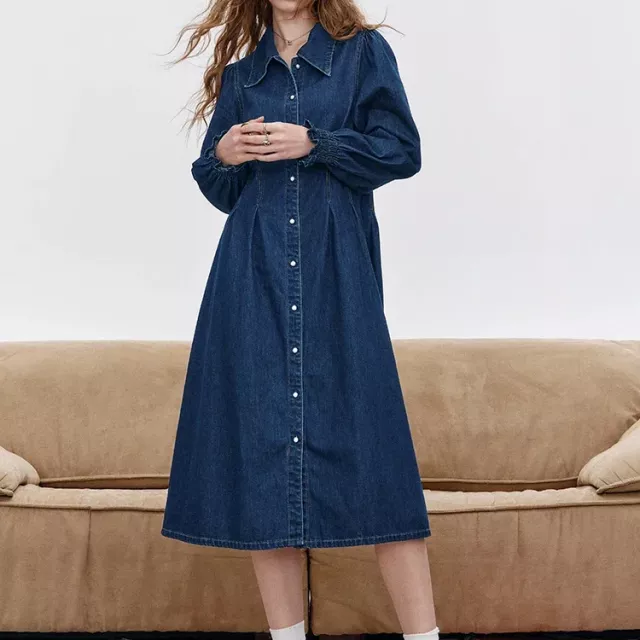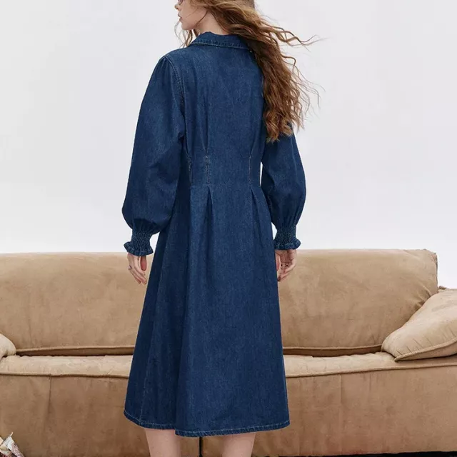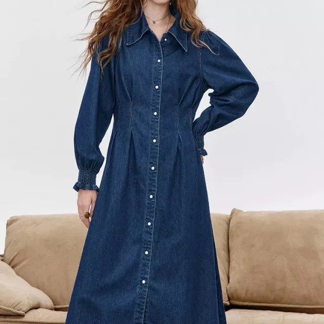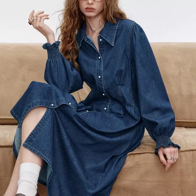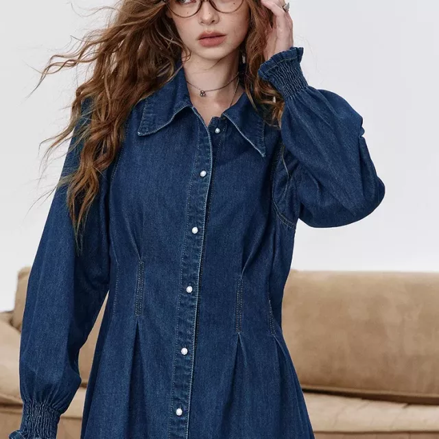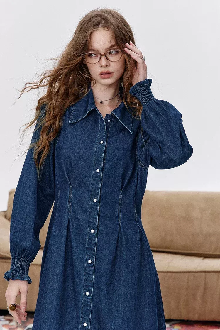 What truly sets this dress apart is its combination of structure and comfort. The crinkle denim fabric adds character without looking heavy, and the delicate lace-up detail gives it a feminine finish. Unlike stiff denim dresses, this one offers a soft, slightly stretchy feel that keeps you comfortable all day long. The solid color makes it easy to style with different accessories, shoes, and layers.