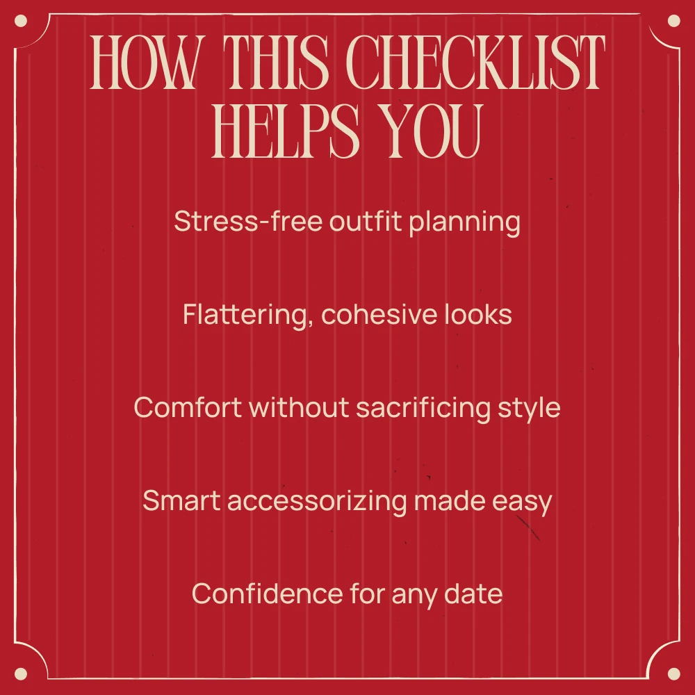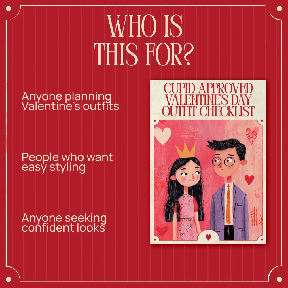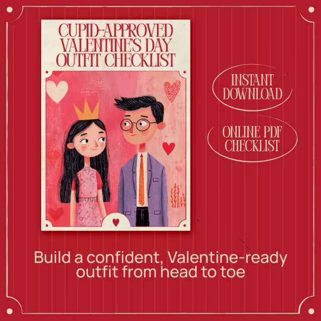 Make getting dressed the easiest part of your Valentine’s Day. Download the Cupid-Approved Valentine’s Day Outfit Checklist today and create a look you’ll love—effortlessly. Click purchase now and start styling with confidence.