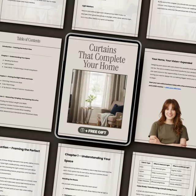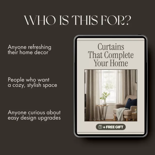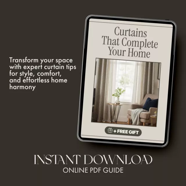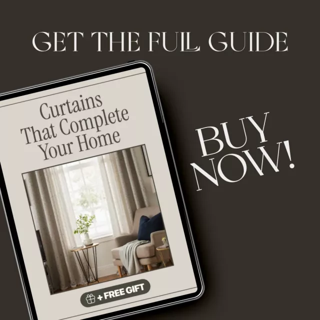 Bring warmth, elegance, and personality to your living spaces with Curtains That Complete Your Home—a beautifully designed digital gUIDE that walks you through how to choose curtains that truly elevate your home. Whether you’re refreshing a single room or redesigning your entire space, this comprehensive resource helps you make confident, stylish decisions that blend form and function effortlessly. Discover how light, texture, and color work together to frame your view and reflect your unique style.