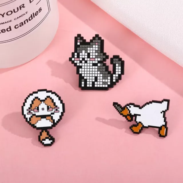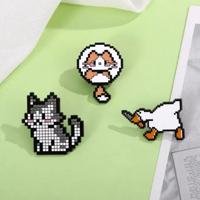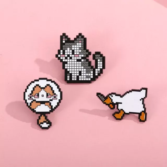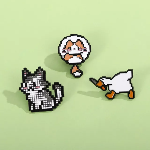 Cute Pixel Dagger Goose & Cat Enamel Brooch – Trendy Animal Lapel Pin