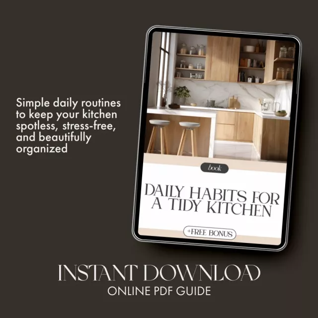 Transform your kitchen—and your peace of mind—starting right now. Download Daily Habits for a Tidy Kitchen and discover easy tips for keeping counters clear daily. Build small habits that create big change and enjoy the calm, organized home you’ve always wanted.