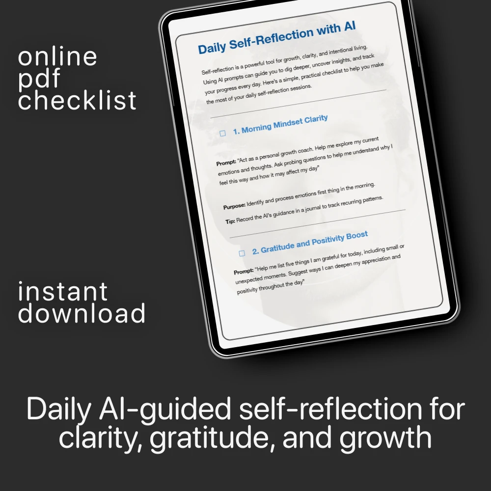 Unlike generic self-reflection worksheets, this checklist is specifically designed to work with AI. It blends the power of personal development principles with smart prompt engineering, so you get deeper, more meaningful insights from your AI assistant.