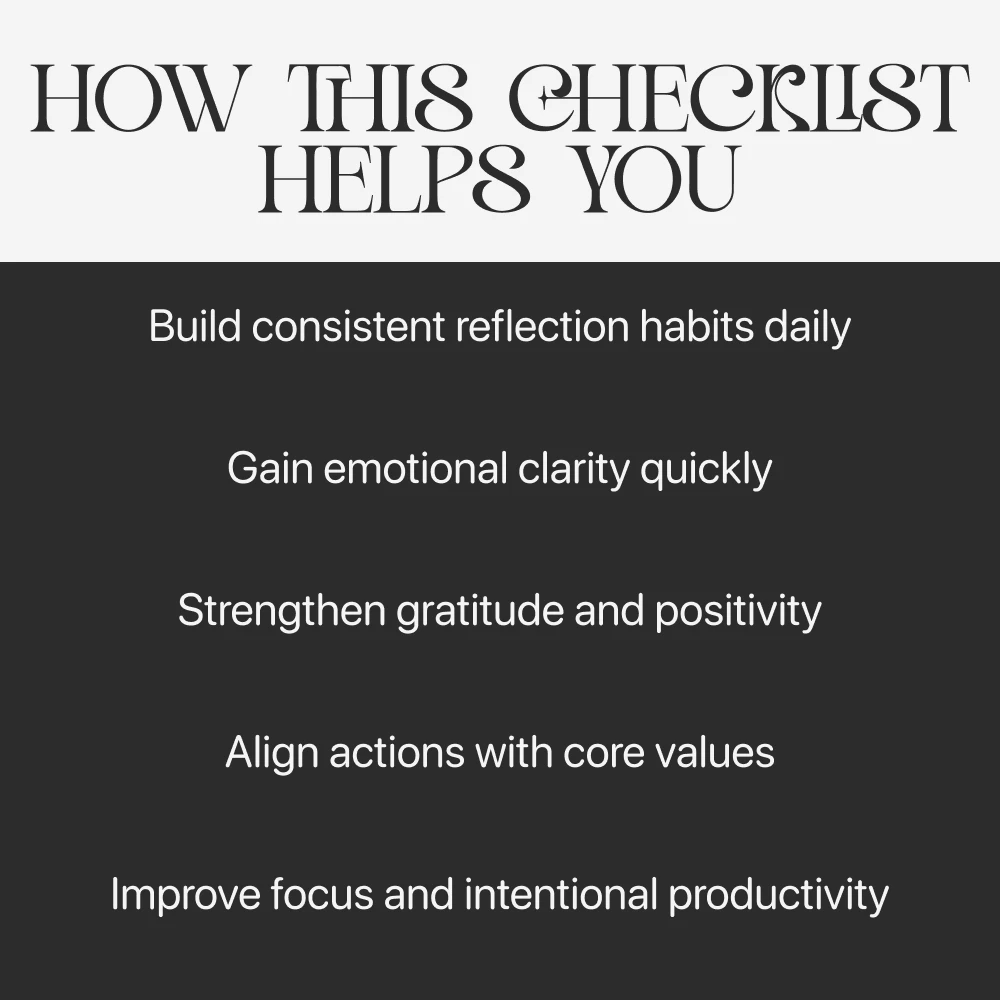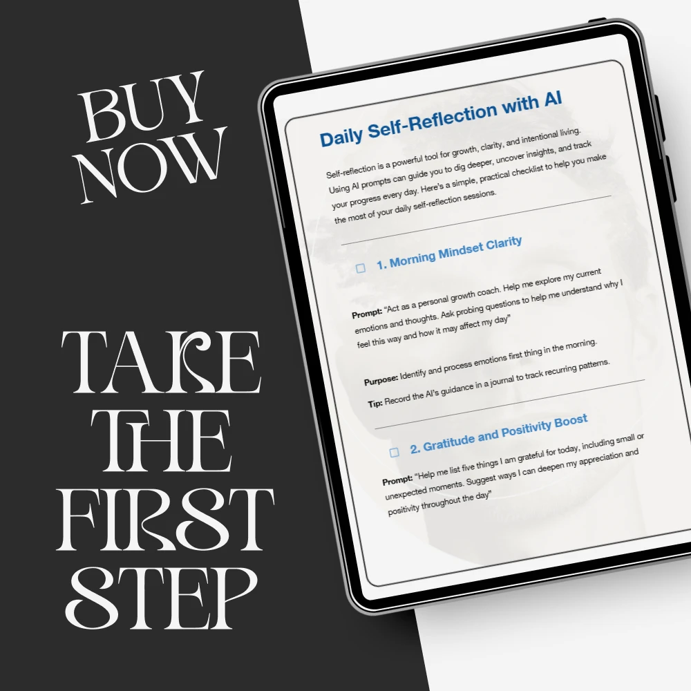 Start building a powerful daily reflection habit with Daily Self-Reflection with AI. Download your checklist now and turn your thoughts into clarity, your emotions into awareness, and your days into intentional growth. Your next level begins with one reflection.