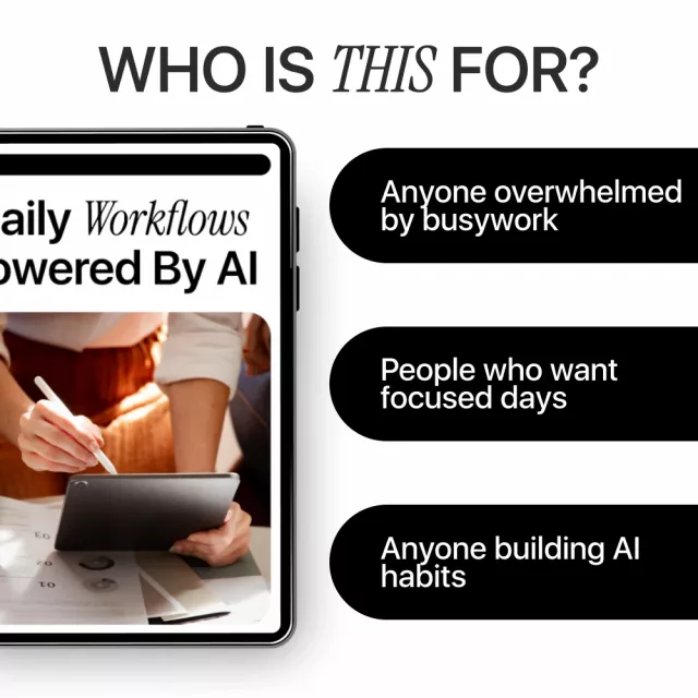If you’re ready to stop feeling busy and start seeing real progress, Daily Workflows Powered by AI gives you a clear, repeatable system you can use immediately. Download the ebook today and start building workdays that feel focused, intentional, and sustainable.