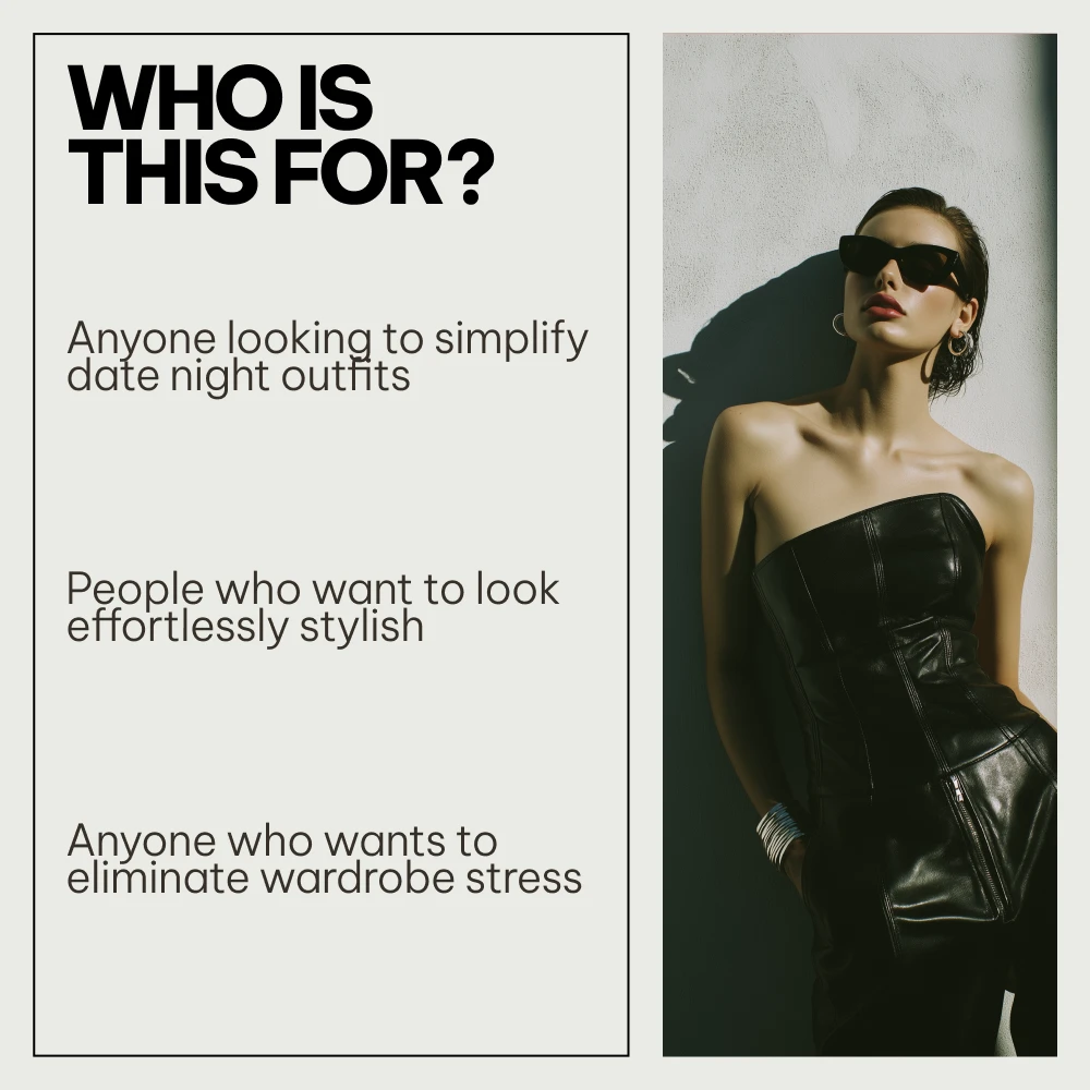 This bundle is perfect for women who want stylish, repeatable date night outfits without overthinking their wardrobe. It’s ideal if you love looking put together but don’t want to spend hours planning outfits, shopping unnecessarily, or second-guessing your choices before a date.