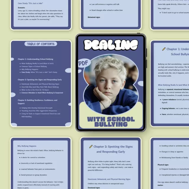 School bullying can leave children feeling isolated, anxious, and powerless—and parents unsure of what to do next. Dealing With School Bullying is a clear, compassionate digital guide designed to help you understand what’s really happening, respond quickly, and support a child through one of the most challenging experiences of school life. This easy-to-follow resource gives you real-world guidance, emotional insight, and practical tools so you’re not left guessing when it matters most.
