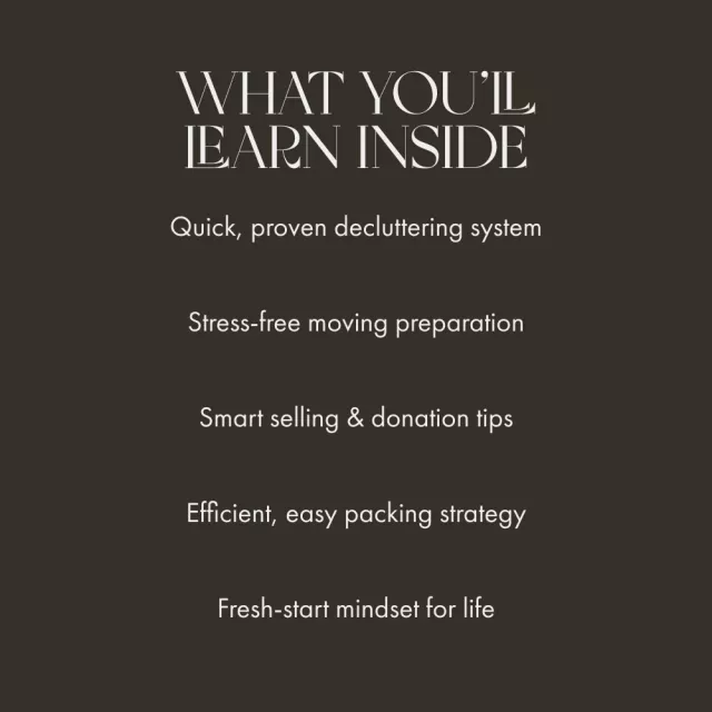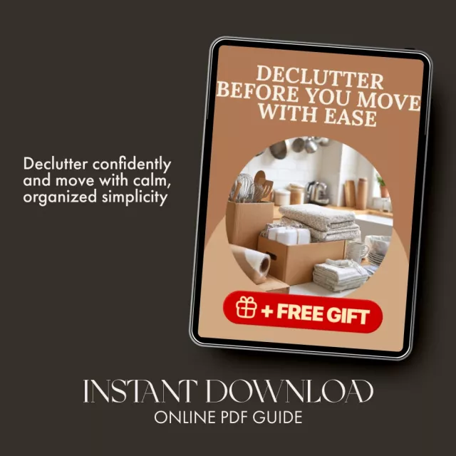 Moving soon? Declutter Before You Move with Ease is the must-have eBook that helps you clear your space and your mind before the big day. Designed for anyone wondering how to declutter before moving, this digital guide walks you through a stress-free, step-by-step system to lighten your load, reduce overwhelm, and start your next chapter clutter-free. Whether you’re moving across town or across the country, this guide will help you keep what matters most—and let go of the rest.