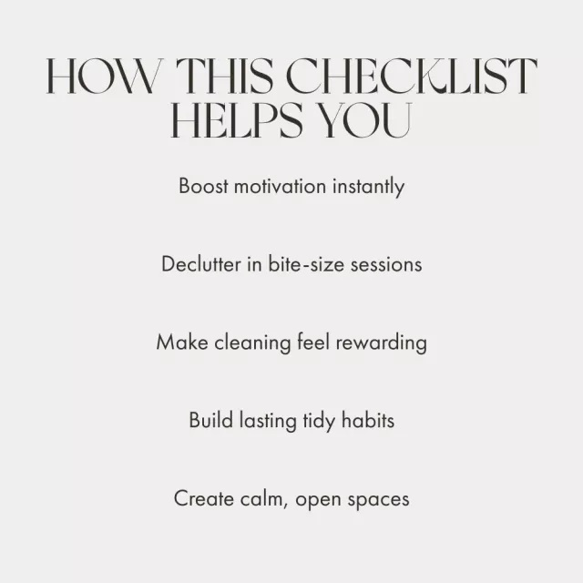 This checklist is for anyone who’s tired of clutter stealing their peace of mind—moms, students, busy professionals, or anyone craving a fresh, calm home environment. If you’ve ever thought, “I don’t know how to start decluttering when overwhelmed,” this is your sign to start here.