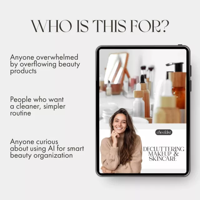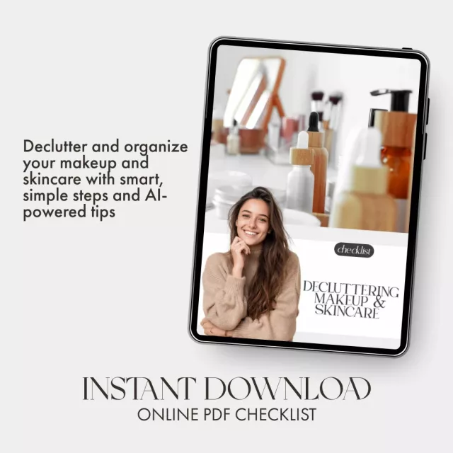 This is more than a checklist—it’s a transformation tool that brings clarity, confidence, and calm to your daily routine. Say goodbye to cluttered countertops and hello to a clean, inspiring beauty space. Download your Decluttering Makeup & Skincare Checklist now and learn how to declutter your makeup and skincare like a pro. Start your journey toward a minimalist, organized beauty collection today!