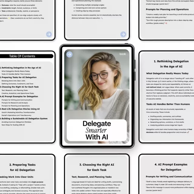Delegation doesn’t have to mean endless instructions, follow-ups, or giving up quality. Delegate Smarter With AI is a practical, easy-to-follow eBook that shows you exactly how to hand off work to AI with confidence. Instead of feeling overwhelmed by new tools, you’ll learn a clear system for deciding what to delegate, how to prepare tasks properly, and how to get reliable results that actually save time. This guide is focused on real-world use, not theory, so you can start delegating smarter immediately.