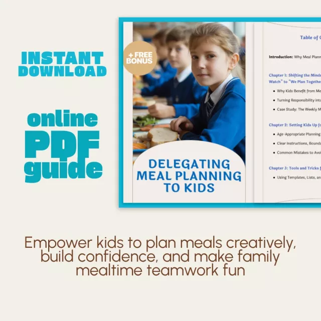Unlike generic parenting eBooks, Delegating Meal Planning to Kids is designed as a practical, interactive roadmap. It combines expert insights with real-world examples, printable templates, and creative tools — even tips on using AI to make meal planning fun and personalized. Whether you’re a busy parent looking to save time or a teacher seeking family-focused learning tools, this digital download helps your household run smoother while nurturing lifelong skills.