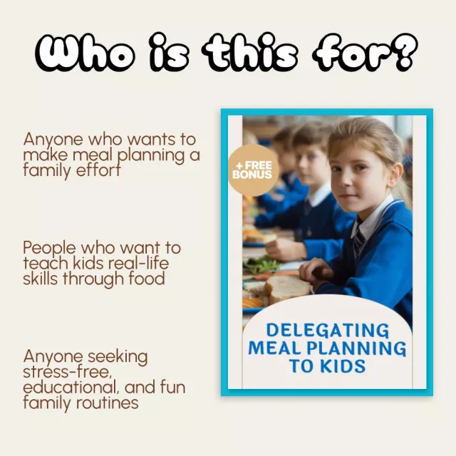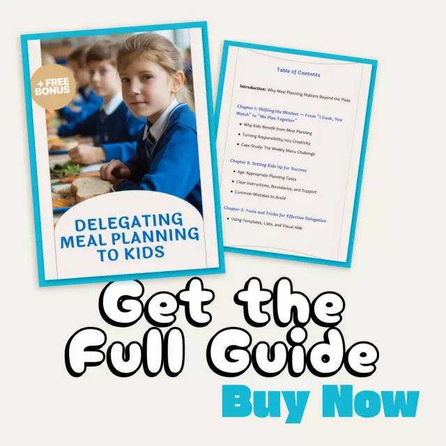 Download Delegating Meal Planning to Kids today and start transforming your kitchen into a space of creativity, confidence, and teamwork. Your kids will love the responsibility — and you’ll love the results!