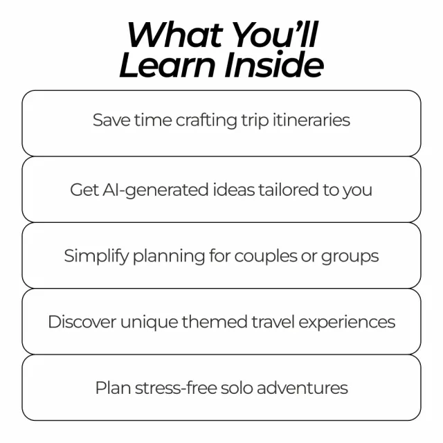 • Save Time: No more endless research—get ready-to-use AI-generated itineraries in minutes.