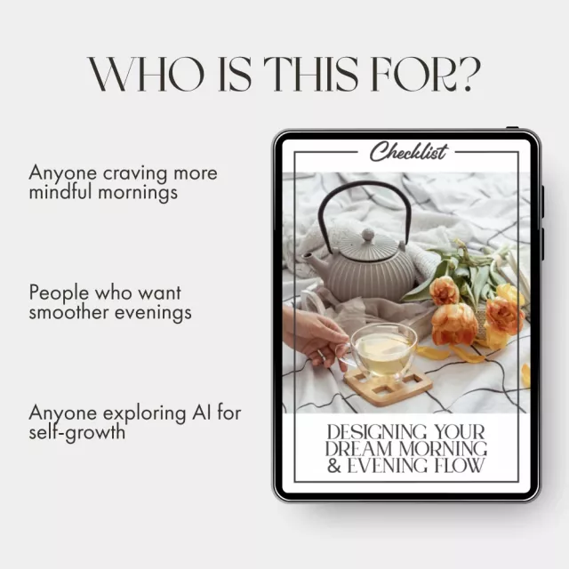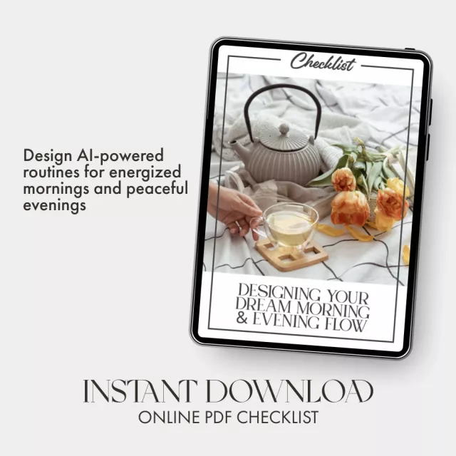Ready to feel more organized, energized, and at ease every day? Download Designing Your Dream Morning & Evening Flow now and let AI help you design the life rhythm you’ve been dreaming of. Your best mornings and calmest nights start here.