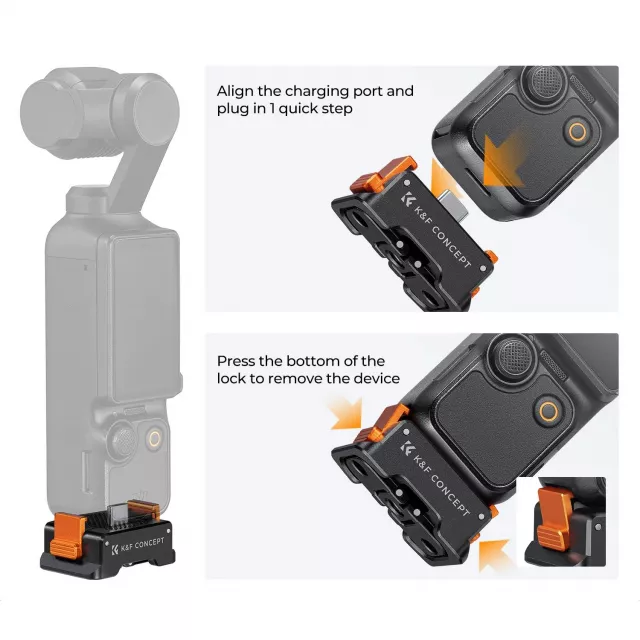 Setting up the charging base is quick and hassle-free. Simply align the charging port, plug it in, and press the side safety clips to lock it in place. The secure fit ensures your camera stays stable, giving you peace of mind while filming or working at your desk. Its intuitive design makes it perfect for both beginners and professional content creators who need a reliable and easy-to-use charging solution.