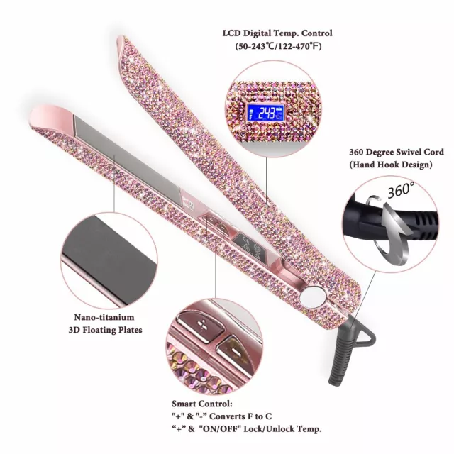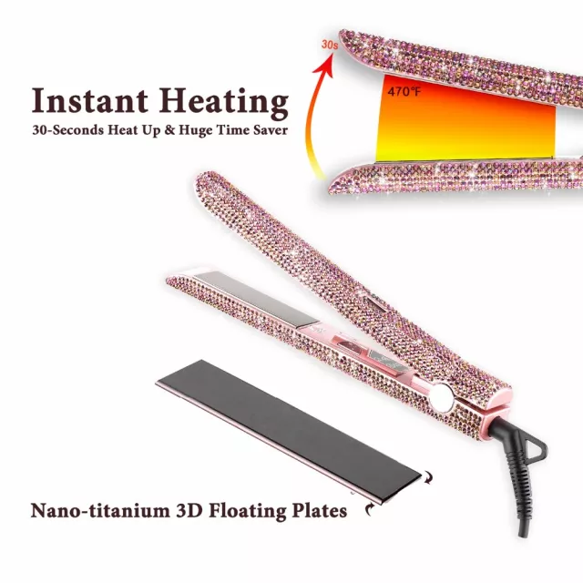 Transform your everyday hair routine into a glamorous experience with this dazzling hair straightener and curler. Designed with sparkling rhinestones and salon-grade technology, this styling tool is perfect for achieving sleek, straight locks or bouncy, defined curls—all while adding a touch of bling to your vanity. With its ultra-high heat up to 470℉, you can enjoy professional-quality styling from the comfort of home.