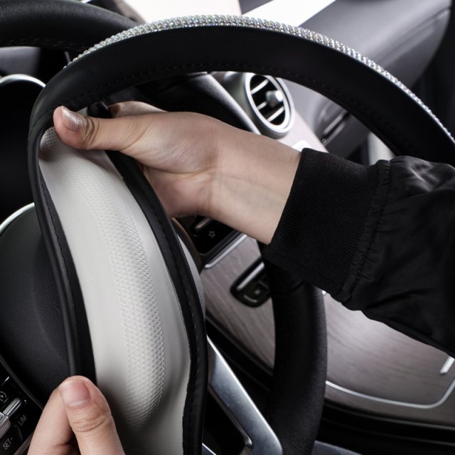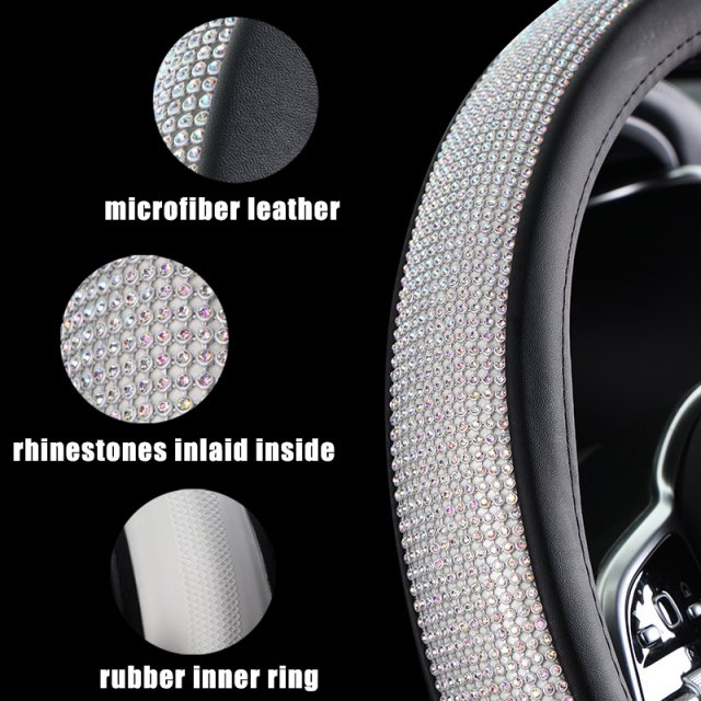 This steering wheel cover isn’t just a pretty addition to your car—it’s packed with practical benefits. The PU leather material protects your steering wheel from wear and tear caused by daily use, while the rhinestone design enhances grip for better control and added safety. Its universal fit makes it an easy upgrade for most vehicles, and the secure rubber lining keeps it firmly in place. The rhinestones are expertly set, ensuring they won’t fall off even after extensive use, making it as durable as it is dazzling.