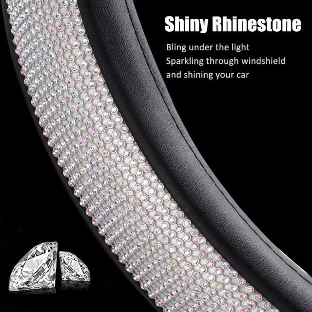 Elevate your driving experience with the Diamond Rhinestone Steering Wheel Cover. Designed to fit standard 15-inch steering wheels (14.5-15 inches in diameter), this sparkling accessory combines durable PU leather with dazzling rhinestones for the ultimate blend of luxury and practicality. Perfect for those who love to add a touch of glamor to their car, this steering wheel cover offers superior grip, comfort, and protection for your steering wheel. Whether you’re commuting or heading out for a night on the town, this cover ensures your car interior shines as bright as you do.