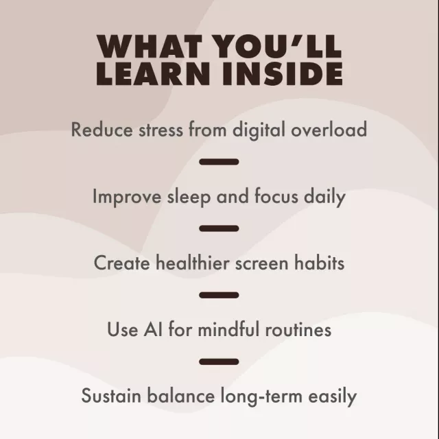• Chapter 4: Sustaining Your Digital Balance – Track progress, celebrate wins, and use AI reminders to maintain digital wellness long term.