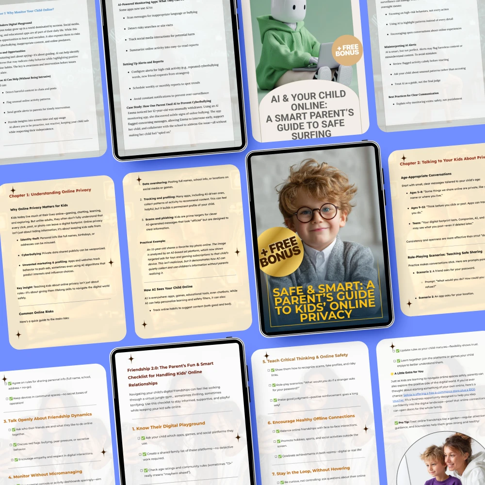 I didn't realize how much I didn't know about AI and my kid’s online life! This bundle has really opened my eyes to the potential dangers and how to proactively protect them. The tips on talking to your child are especially helpful—it’s not just about rules, it’s about building trust.