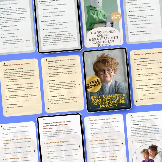 Your child’s digital safety is crucial, and it starts with you. Download the Digital Privacy Bundle to Keep Your Kids Safe today and equip yourself with the resources you need to confidently navigate the challenges of digital parenting. With our 5-in-1 bundle, you’ll have everything you need to handle children’s online privacy and create a safe, positive online environment for your child. Don’t wait—download now!