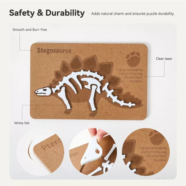 This dinosaur fossil toy is carefully crafted to be both fun and safe. Each fossil block contains hidden dinosaur bones, waiting to be uncovered with the included child-friendly hammer and brush. The skeleton pieces fit together smoothly, giving children the joy of piecing together prehistoric creatures. Made from safe, odorless material with rounded edges, the set is designed to protect little hands while encouraging exploration.