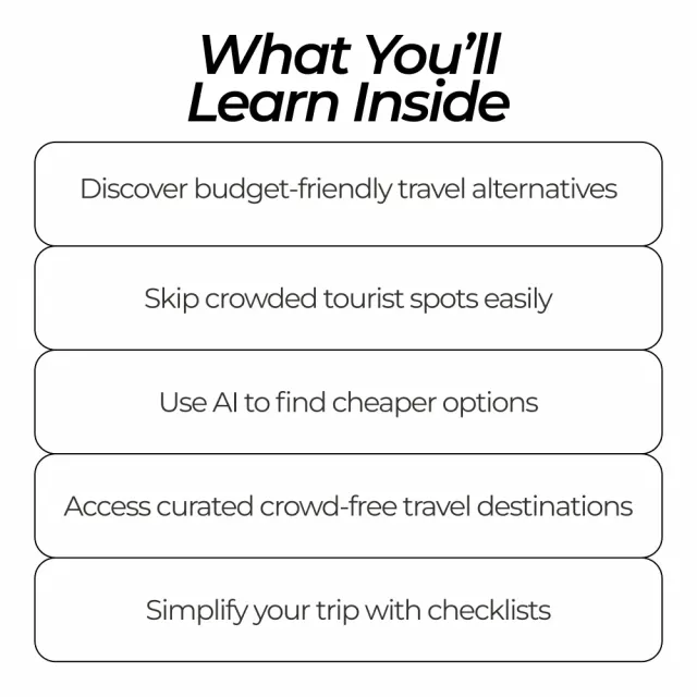• AI-Powered Travel Tips – Our AI-driven guide helps you find budget alternatives, ensuring you get the most out of your trip without breaking the bank.