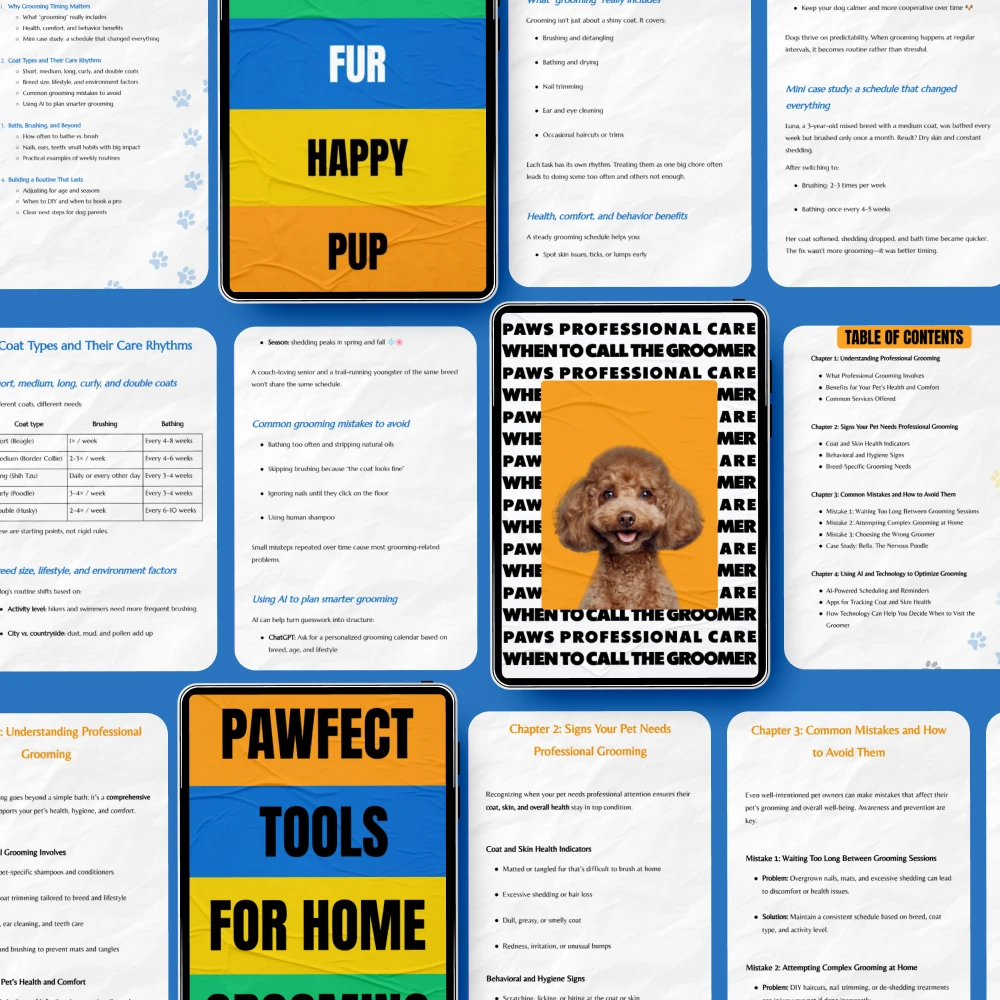 This bundle is perfect for new dog owners, busy pet parents, and anyone who wants to understand dog grooming basics without confusion. Unlike scattered online articles or generic guides, the Dog Grooming Essentials Bundle combines multiple resources into one cohesive system. Each guide, the eBook, and the checklist work together, giving you structure, clarity, and confidence in every grooming session.